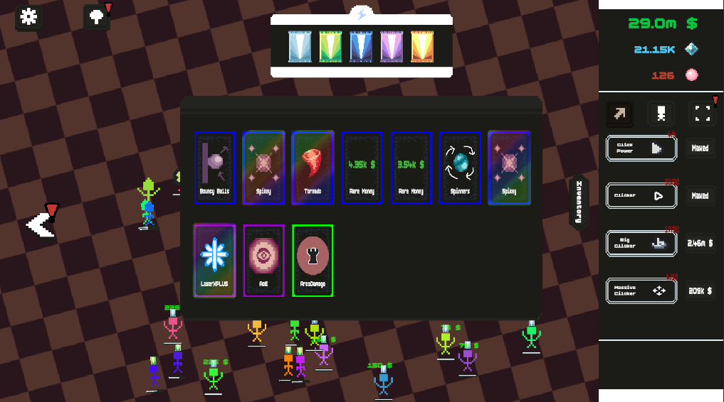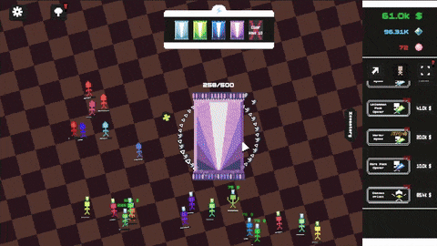 Pacremental game about open packs, unlock new weapons, buy upgrades and clear the waves. You can build your tower with whatever weapons you like.